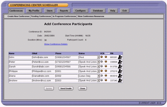 創(chuàng)建電話會議的用戶可以將與會人員的詳細資料如E-Mail和電話號碼添加到會議中。 這樣就可以在會議之前,用E-Mail通知所有與會人員會議的詳細內(nèi)容包括會議名稱,描述,會議ID和參加會議的PIN唯一識別碼