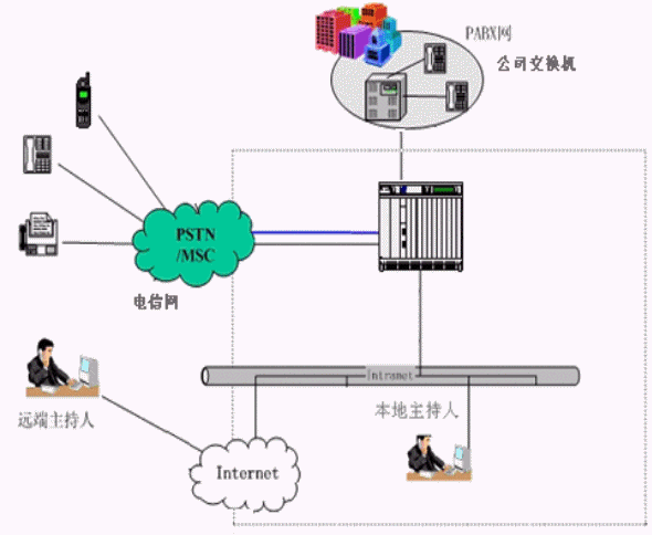 - 系統(tǒng)支持模擬中國一號、中國七號、ISDN中繼與交換機(PSTN電信、PABX公司集團交換機),支持直接用模擬分機接入會議會場;