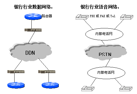 銀行的網絡現狀是:擁有兩個互相獨立的網絡,一為數據網絡,一為語音網絡。兩者都必須向電信部門租用線路,這樣就造成了重復性投資,而且以后使用時還需要交納兩筆很大的通信費用。另外在維護上也很不便。造成了人力、物力、財力上的浪費。
