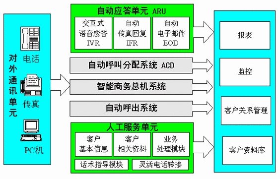 ACD(自動呼叫分配)是呼叫中心有別于一般的熱線電話系統(tǒng)的重要部分,在一個呼叫中心中,ACD成批的處理來話呼叫,可根據(jù)用戶類別、客戶支持的忙閑統(tǒng)計、客戶支持的服務(wù)能力、不同時段、主叫用戶的號碼、該用戶曾聯(lián)絡(luò)過的客戶支持、客戶支持的專業(yè)技能等級等信息并將這些來話進行分配給具有相關(guān)職責(zé)或技能的各個業(yè)務(wù)代理。ACD提高了系統(tǒng)的效率,減少了客戶服務(wù)中心系統(tǒng)的開銷,并使公司能更好的利用客戶資源。