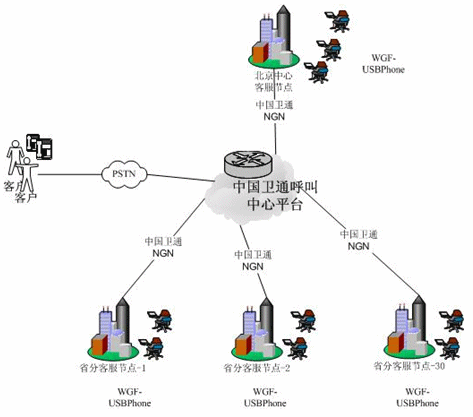 WGF-USB語音電話助力衛(wèi)通10070全國客服中心系統(tǒng)