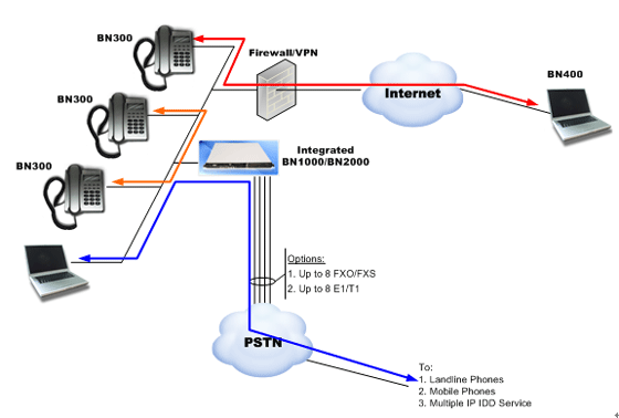 - BN2000 IP-PBX具有動(dòng)態(tài)路由選擇功能,支持用戶訂購(gòu)多種IP國(guó)際長(zhǎng)途電話(IP IDD)服務(wù)。