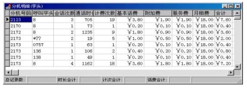 2) 在語音提示下,用戶使用電話可查到每月的各項綜合費用,例如市話費、本地網費、長話費、固定費、其它和總費用等。