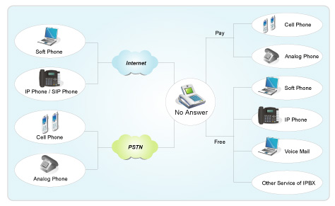 Essence IPBX系列可以注冊(cè)者之形式注冊(cè)于其他SIP協(xié)定伺服器上,如ITSP運(yùn)營(yíng)平臺(tái),或是分公司之小型IP PBX注冊(cè)至總公司之大型IP PBX ,均可透過(guò)Internet 將話務(wù)無(wú)限延伸。