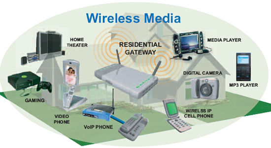 在家中傳送廣播質量的視頻將需要住宅網(wǎng)關整合多種有線和無線技術、安全特性和服務質量(QoS)能力。住宅網(wǎng)關需要支持最新的無線連網(wǎng)技術,例如目前的802.11g以及暫露頭角的802.11n、802.11d/e和802.11r標準。多種有線家庭連網(wǎng)技術也在考慮之內,所以住宅網(wǎng)關應能支持以太網(wǎng)、同軸電纜多媒體聯(lián)盟(MOCA)、家用電話線網(wǎng)絡聯(lián)盟(HPNA)、家庭插電聯(lián)盟(HPPA)和通用電力線協(xié)會(UPA)等機構推出的有線家庭聯(lián)網(wǎng)技術。