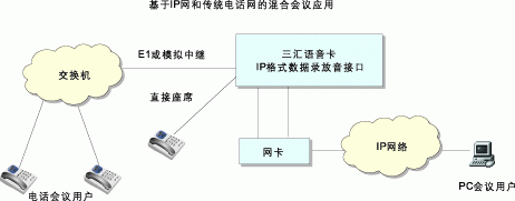 交互式電話會(huì)議與傳統(tǒng)的電話會(huì)議的區(qū)別就在于開會(huì)時(shí)不需要由會(huì)議主持人控制由某人發(fā)言,而是所有與會(huì)者可以自由發(fā)言,就如同坐在同一間會(huì)議室中一樣。三匯公司所有型號的基于DSP技術(shù)的語音卡,包括數(shù)字卡和模擬卡,均內(nèi)置了對交互式電話會(huì)議的支持,只要使用語音卡,無需額外的會(huì)議卡,就可以構(gòu)成具有完善功能的交互式電話會(huì)議系統(tǒng)。三匯公司還采用了獨(dú)創(chuàng)的分布式電話會(huì)議實(shí)現(xiàn)技術(shù),電話會(huì)議的關(guān)鍵資源----混音器分布在每一個(gè)通道中。因此語音卡對會(huì)議系統(tǒng)的支持具有極大的靈活性,既可以召開大量的三方會(huì)議,也可召開所有通道同時(shí)參加的大型會(huì)議,無論是會(huì)議的數(shù)量還是參加會(huì)議的人數(shù)均只受系統(tǒng)總通道數(shù)的限制。三匯語音卡還支持IP會(huì)議和傳統(tǒng)電話會(huì)議的混合應(yīng)用。