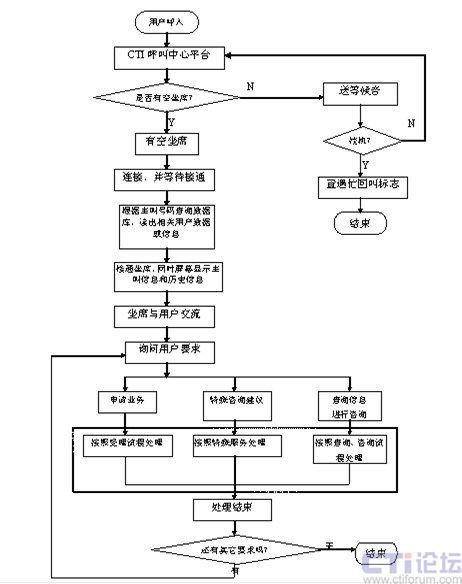 直接人工業(yè)務處理流程是指:用戶撥入服務中心后,由坐席員直接與用戶進行語音交流,完成用戶要求的服務方式的工作流程。其流程圖如下: