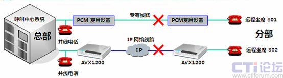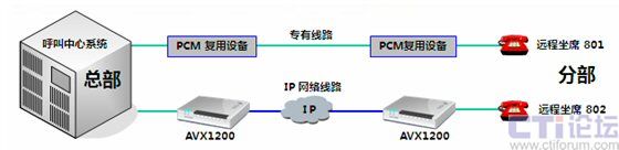 傲威通信采用AVX1200作為中心端和遠(yuǎn)程坐席端的復(fù)接設(shè)備,采用Hotline形式,只要遠(yuǎn)程坐席員摘機(jī),中心端的呼叫中心交換機(jī)立刻接到摘機(jī)指令。當(dāng)有呼叫到來(lái),遠(yuǎn)程坐席可像本地坐席一樣接聽電話,無(wú)任何差異。