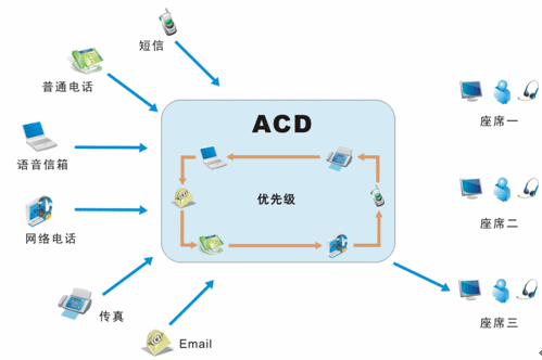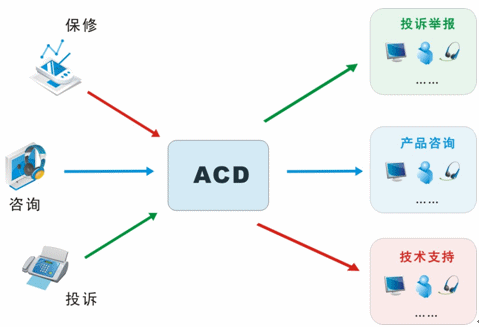 我們目前接入的媒體有很多,不再是傳統(tǒng)的單一電話接入方式,還包括網(wǎng)絡(luò)呼入、E-mail呼入,短信、留言等,所有的媒體接入都通過統(tǒng)一的排隊路由,以最優(yōu)化的策略分配給最適合的座席人員;并且,不同的媒體類型具有不同的優(yōu)先級,ACD(自動話務分配)根據(jù)優(yōu)先級和設(shè)定的排隊算法,自動實現(xiàn)媒體的統(tǒng)一智能路由。