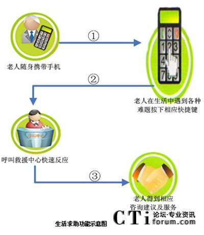 老人使用不記任何電話號,按下紅鍵(盲人按粗糙鍵)就可發(fā)送緊急求救信號;按下綠鍵可以發(fā)送求助信號,求助信息根據(jù)用戶需要在同一時間發(fā)送到信息服務(wù)中心、社區(qū)網(wǎng)格管理員、老人指定親屬、物業(yè)公司、及有關(guān)部門,可實(shí)現(xiàn)完整信息獲取和快速響應(yīng),啟動多方通話進(jìn)行緊急調(diào)度,保障老人的生命財(cái)產(chǎn)安全。