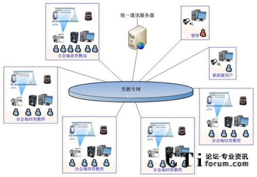 湖南省勞教局是司法廳管理的從事管理、教育、改造勞動(dòng)教養(yǎng)人員的行政機(jī)構(gòu),也是省勞動(dòng)教養(yǎng)管理委員會(huì)的常設(shè)辦事機(jī)構(gòu)。其下屬管理有20多個(gè)下屬機(jī)構(gòu),分布于湖南省各個(gè)地市縣,以前進(jìn)行全局會(huì)議時(shí),所有的人員都需要到長(zhǎng)沙市來(lái)進(jìn)行開(kāi)會(huì),管理起來(lái)很不方便,同時(shí)差旅成本也比較高,同時(shí)局里經(jīng)常需要對(duì)下面的工作人員進(jìn)行業(yè)務(wù)方面的培訓(xùn)。現(xiàn)客戶需要在他們的勞教專網(wǎng)上部署一套視頻會(huì)議系統(tǒng)來(lái)進(jìn)行管理和培訓(xùn)。