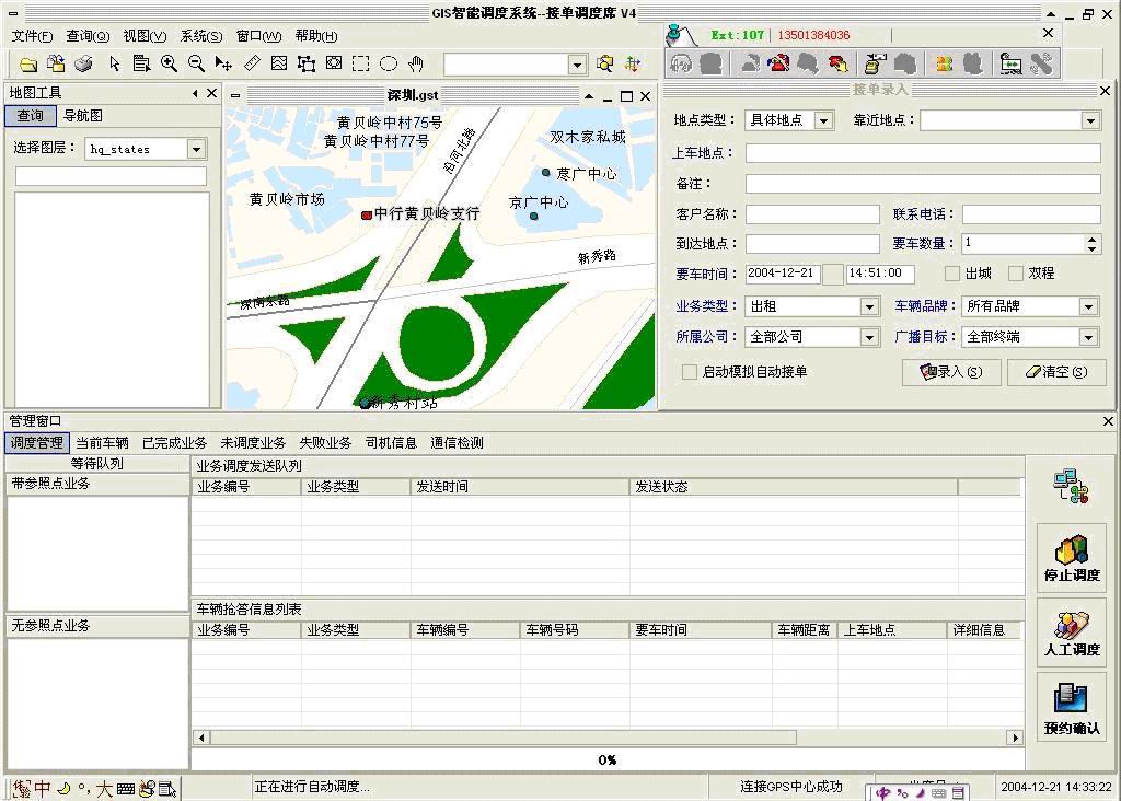 沈陽車輛調度系統(tǒng)即是采用非圖形化控件與GPS系統(tǒng)進行結合的。界面如圖: