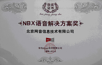 北京網音信息技術有限公司在2006年度華為-3Com公司渠道峰會上榮獲"IP語音解決方案獎"。