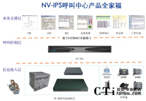 2、“呼叫控制層”指呼叫中心解決方案的核心組件-軟交換平臺NV-IPS,特點如下: