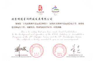 2008奧運(yùn)會(huì)、殘奧會(huì)榮譽(yù)證書