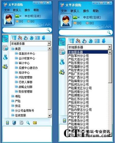 覆蓋全國的太平洋保險不僅在各省的城市有分公司,其分支機(jī)構(gòu)也遍布全國各個區(qū)縣。如何將各項政策快速有效地傳達(dá)給各個分支機(jī)構(gòu),成為保險公司信息總部一直探索的一條“路”。如何讓基層機(jī)構(gòu)也能參與日常的各項大大小小的會議,如何讓分布在全國的企業(yè)員工接受良好的培訓(xùn)?傳統(tǒng)的通訊手段似乎難以滿足需要。中國太平洋保險(集團(tuán))股份有限公司是全國性股份制商業(yè)保險公司,成立于1991年4月,總部設(shè)在上海。大部分分公司已經(jīng)自行使用很多即時通訊產(chǎn)品,但由于系統(tǒng)分散,各分公司管理能力存在差異,造成目前CPIC內(nèi)部即時通訊軟件使用相對比較混亂,部分員工還存在使用MSN、QQ的現(xiàn)象,這種現(xiàn)象已經(jīng)給公司安全生產(chǎn)帶來了一定的隱患。為此,太平洋保險集團(tuán)的應(yīng)用理應(yīng)跳出即時通信的應(yīng)用,選擇一個擴(kuò)展性、控制性、可管性強(qiáng)大的通信平臺。