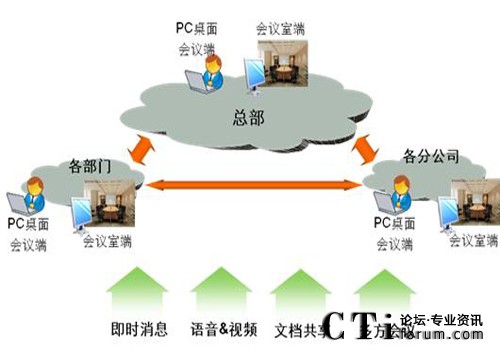 同時(shí)支持語音、視頻、文本通信及文檔共享、桌面共享、白板操作、網(wǎng)頁共享等協(xié)用手段