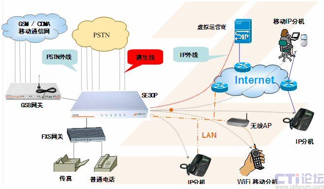 Trunk號、內部小號),實現(xiàn)多路由選擇;支持PSTN外部用戶,如與GS8移動模塊網關配合使用,還可實現(xiàn)移動的中繼服務,解決中繼不足問題,且有一號通等功能;擁有逃生功能,解決緊急狀況的通信問題。虛擬辦公室的概念,為客戶提供更自由的辦公通信手段。采用WEB管理方式,使用便捷,維護簡單。