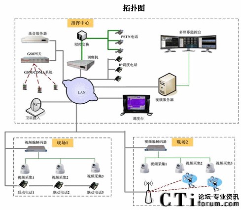 該系統(tǒng)由調度機、調度臺、視頻服務器、視頻監(jiān)控臺、調度終端、音視頻一體的終端、音頻終端、綁定視頻終端等組成。