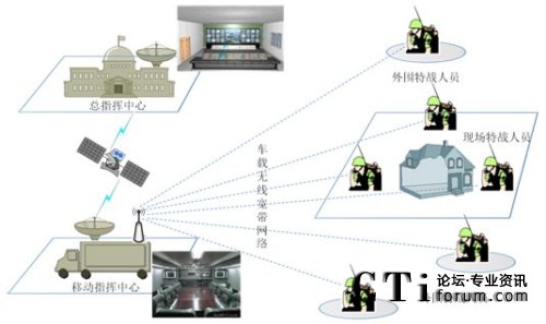 移動(dòng)指揮中心可在執(zhí)行任務(wù)的時(shí)候開往作戰(zhàn)現(xiàn)場附近,車上部署一整套車載調(diào)度平臺(tái),作為現(xiàn)場指揮人員進(jìn)行調(diào)度指揮使用,同時(shí)在指揮車上部署無線寬帶網(wǎng)絡(luò),作為戰(zhàn)場使用,移動(dòng)指揮車和總指揮中心可通過衛(wèi)星網(wǎng)絡(luò)實(shí)現(xiàn)互聯(lián)互通。