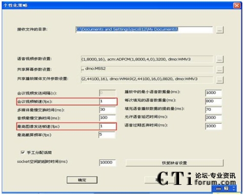 在會議進(jìn)行之前,主持人要根據(jù)網(wǎng)絡(luò)環(huán)境和電腦配置來設(shè)置會議幀速和圖像最高發(fā)送幀速從而實現(xiàn)最佳的視頻效果。會議幀速和圖像最高發(fā)送幀速設(shè)置的越大,圖像就越連續(xù),但同時對電腦配置要求也就越高。如果服務(wù)器和主持人電腦配置可以達(dá)到雙核,2G以上的內(nèi)存,就可以把會議幀速和圖像最高發(fā)送幀速設(shè)置到5fps以上,此時聲音和口型就可以對上。會議幀速對所有的參加會議的都生效,但如果會議幀速設(shè)置的過高,有的參會人員的幀速達(dá)不到會議幀速,這時可以把自身的圖像最高發(fā)送幀速設(shè)置的低一些,因為當(dāng)會議幀速高于自身設(shè)置的圖像最高發(fā)送幀速時,以自身設(shè)置的為主,當(dāng)會議幀速低于自身設(shè)置的最高圖像發(fā)送幀速時,以會議幀速為主。在各種條件都不是很好的情況下,建議會議幀速設(shè)置為1,這樣首先可以確保視頻會議可以正常進(jìn)行,然后再一點點的增加會議幀速,最終達(dá)到最佳的效果。