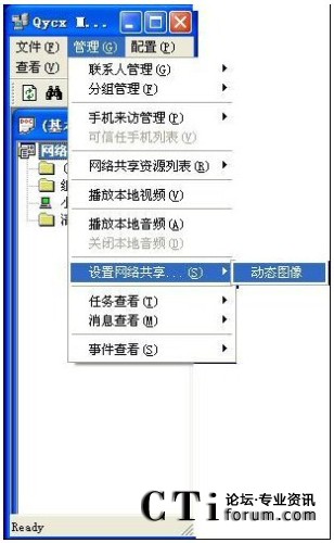 在清揚客戶端界面上點擊[管理]/[設(shè)置網(wǎng)絡(luò)共享]/[動態(tài)圖像]: