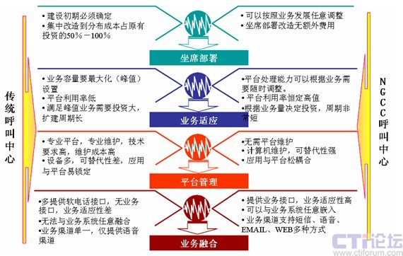 主要功能——   其他功能——   媒體服務器   NGCC平臺軟件結構 與傳統(tǒng)呼叫中心技術基本相同    4. 不同類型的呼叫中心平臺比較