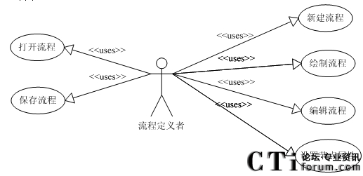 本文設(shè)計(jì)的IVR系統(tǒng)的流程定義工具遵循以上規(guī)則,它被流程定義者使用,其所有的動(dòng)作都是由流程設(shè)計(jì)人員發(fā)起的,通過(guò)對(duì)定義工具進(jìn)行了統(tǒng)一建模分析,其使用用例圖如圖3.3所示。