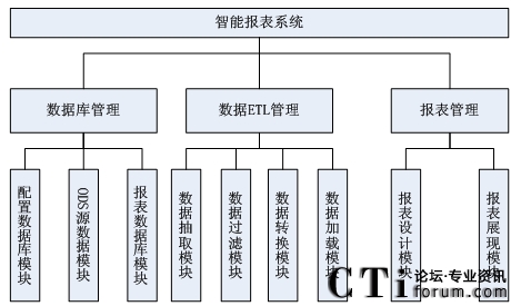 從功能模型圖中分析,可定制報(bào)表系統(tǒng)主要包括數(shù)據(jù)庫模塊、數(shù)據(jù)ETL管理模塊和報(bào)表管理模塊三大模塊。下面來介紹這幾個(gè)功能模塊:
