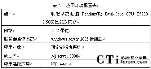 該部分將可定制報表系統(tǒng)應(yīng)用于呼叫中心,以驗證系統(tǒng)正確性。其設(shè)備配置環(huán)境如表5.1所示。