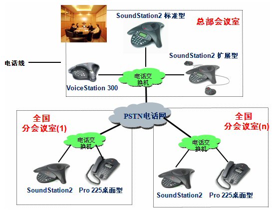 根據(jù)客戶的要求,本著“完善、經(jīng)濟、高效”的原則,我們決定在原有系統(tǒng)的基礎上,更換電話終端為寶利通會議電話,桌面可以更換寶利通 Pro 225型桌面商務電話。