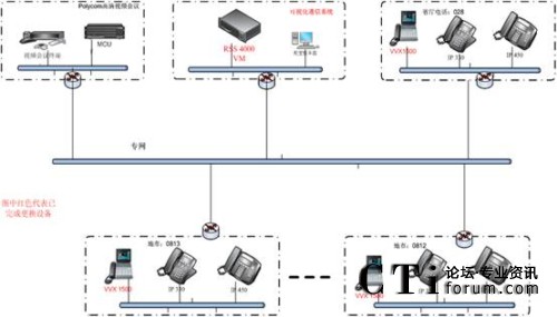 通過網(wǎng)絡(luò)還可以將系統(tǒng)與現(xiàn)有高清視頻會議系統(tǒng)進行連接,在VVX1500話機之間實現(xiàn)單點視頻通信的基礎(chǔ)上,實現(xiàn)VVX1500的多點通訊以及和視頻會議終端之間的點對點視頻通信。同時,領(lǐng)導(dǎo)也可以通過MCU加入到視頻會議中實現(xiàn)多方視頻會議,這樣就可以實現(xiàn)領(lǐng)導(dǎo)在辦公室參加視頻會議,而不用每次去會議室開會。