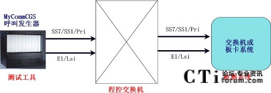 圖 1 MyCommCGS呼叫發(fā)生器與被測系統采用交換方案