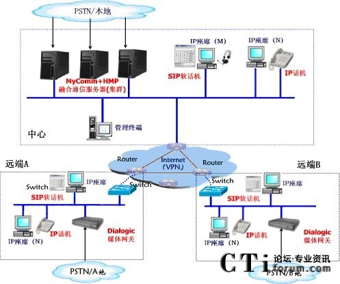 MyCommIPCC是MyComm公司基于Dialogic HMP(Host Media Processing)主機媒體處理軟件,為構(gòu)架純IP呼叫中心或純IP語音增值業(yè)務(wù)系統(tǒng)而開發(fā)的CTI應(yīng)用開發(fā)平臺。基于MyCommIPCC平臺,只需部署服務(wù)器主機即可進(jìn)行媒體資源處理任務(wù),無需專門的底層硬件支持;除了與PSTN接口的數(shù)字接口卡,很多本來需要通過硬件實現(xiàn)的功能都是通過軟件實現(xiàn),因此開發(fā)、部署、維護、擴容等的費用都比較低。簡單地說,在一臺PC服務(wù)器上,通過安裝MyCommIPCC和Dialogic