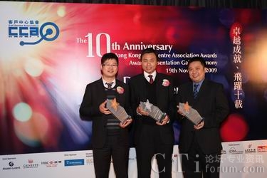 CTI論壇(ctiforum)11月20日消息(記者 張塵):11月19日晚,大中華區(qū)領(lǐng)先信息通訊技術(shù)服務商第一線安萊于2009年香港客戶中心大獎評選晚會中,再次囊括三項大獎:最佳外包客戶中心 (呼入)、最佳華南客戶中心 (100席以上) 及最佳離岸客戶中心。加上上個月由中國呼叫中心協(xié)會CNCCA授予的“2009中國(亞太)最佳外包呼叫中心”及全球IP通訊聯(lián)盟所頒發(fā)的“最佳外包呼叫中心供應商(國內(nèi))”獎,第一線安萊在這個金秋時節(jié)可謂收獲頗豐。第一線安萊IP呼叫中心再次獲得業(yè)界的認同,這也體現(xiàn)了第一線安萊在該項產(chǎn)品及服務方面擁有領(lǐng)先的優(yōu)勢,通過持續(xù)進步,為客戶創(chuàng)造有利的營運模式,也有助于奠定企業(yè)服務的標準,再度奪獎乃實至名歸。