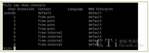 上面的輸出表示A1200P的通道都已識別,驅動安裝成功(本文用的是8個FXS口,上面的channel 01到channel 08是FXs口,后面的FXO表示它們使用的是FXO的信令,并不是表示它們是FXO口,這一點大家應該注意)