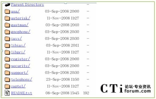 點擊進入,找到zaptel ,libpri,asterisk和asterisk-addons 文件夾,分別點擊進去下載所對應版本的包到/usr/src/目錄下,如圖: