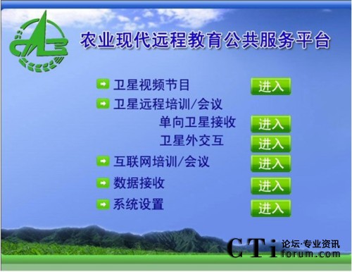 農(nóng)業(yè)現(xiàn)代遠程教育平臺將先進的多媒體寬帶DVB衛(wèi)星通信系統(tǒng)和全面的網(wǎng)絡(luò)遠程教育培訓/會議系統(tǒng),天(衛(wèi)星網(wǎng))地(互聯(lián)網(wǎng))合一,集成廣播、電視和網(wǎng)絡(luò)的功能,形成了廣覆蓋、大容量、多功能、低成本、快捷高效的遠程教育培訓網(wǎng)絡(luò)、技術(shù)培訓資源傳輸通道和網(wǎng)絡(luò)視頻會議系統(tǒng),是面向“三農(nóng)”開展多形式多層次現(xiàn)代遠程教育培訓、科學普及、技術(shù)推廣和信息傳播的公共服務(wù)平臺。同時,該平臺也是首個將視頻會議/培訓接入衛(wèi)星網(wǎng)絡(luò)的系統(tǒng),將遠程視頻會議帶入了新的通訊領(lǐng)域,也為遠程視頻會議的運用開創(chuàng)了一片新的天地。