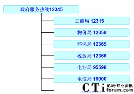 所以筆者建議政府熱線系統(tǒng)的設計目標即是為城市政府提供實現(xiàn)“一個號碼對外”的統(tǒng)一服務渠道,建立“一體化政府”,提供“一站式服務”。把市/區(qū)/縣各級部門的職能統(tǒng)一到一個服務平臺上,市民只需撥打一個電話號碼就可以方便快捷地得到一站式的綜合服務,也可查知預計所需的辦理時間以及進度。公眾事務服務熱線電話(12345、12366、12315等)與處理緊急事務的電話(110、119、120、122)一起將成為城市管理的高效優(yōu)質電話服務系統(tǒng)。