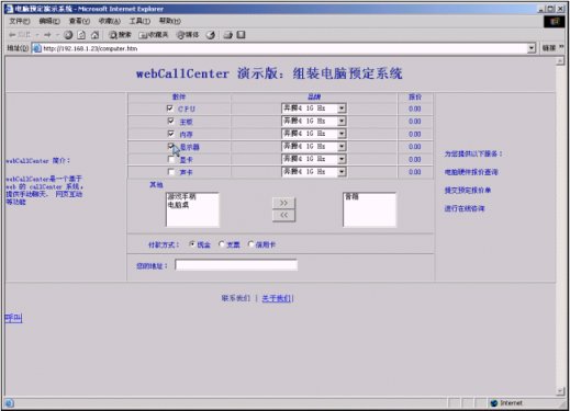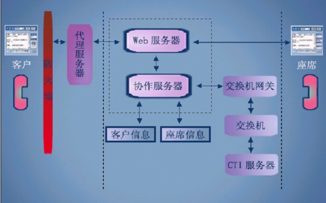 給基于交換機(jī)的呼叫中心,配備Web協(xié)作服務(wù)器和客戶端、座席端軟件包,使得利用PC上網(wǎng)的客戶可以通過因特網(wǎng)呼叫交換機(jī)中的組,使得應(yīng)答的座席,可以和客戶進(jìn)行實時文字交談、護(hù)航瀏覽、表單共享和共享白板。
