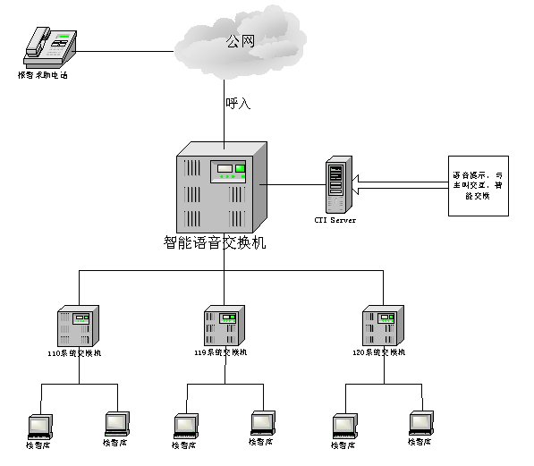 我們不斷總結(jié)經(jīng)驗(yàn),開拓進(jìn)取,逐步建立和完善了以CTI技術(shù)為核心,集110報(bào)警、基層信息化應(yīng)用和多媒體語音信息查詢?yōu)橐惑w的公安綜合信息呼叫中心系統(tǒng)。該系統(tǒng)是公安綜合信息網(wǎng)絡(luò)應(yīng)用手段的延伸,所采用的技術(shù)和實(shí)現(xiàn)的功能完全符合公安部金盾工程的要求,在國內(nèi)處于絕對領(lǐng)先地位。
