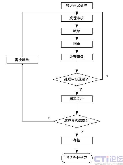 話務(wù)員確認(rèn)投訴和建議后由復(fù)審員再次確認(rèn)分析,然后把用戶的各種意見(jiàn)和合理化建議轉(zhuǎn)相關(guān)部門處理,對(duì)呼叫中心本身的投訴則轉(zhuǎn)班長(zhǎng)席處理。投訴受理系統(tǒng)可以設(shè)置處理部門和處理時(shí)限,完成告警輸出和各種統(tǒng)計(jì)分析工作,投訴和建議的處理結(jié)果可以根據(jù)需要采用人工、自動(dòng)、傳真、短信的形式反饋到用戶以提高用戶對(duì)服務(wù)的滿意度。