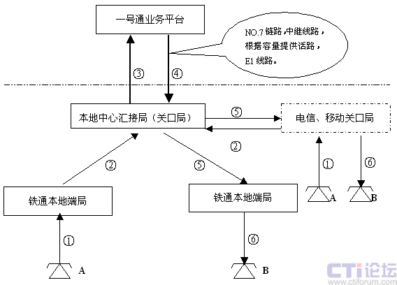 呼叫可以來(lái)自鐵通各匯接局(關(guān)口局)以及從該匯接局(關(guān)口局)接入的移動(dòng)、聯(lián)通、電信呼叫,轉(zhuǎn)移可以是鐵通各匯接局(關(guān)口局)以及從該匯接局(關(guān)口局)出去的對(duì)移動(dòng)、聯(lián)通、電信呼叫。