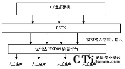 配置恒訊達(dá)公司HXD09的PRI或是7號信令接入,系統(tǒng)可自動與交換機通信獲取主叫號碼,話務(wù)員數(shù)量根據(jù)需要配置。