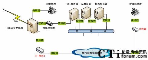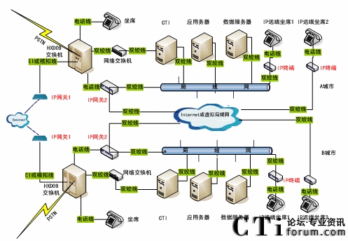 單一的呼叫中心往往是CTI+本地坐席的簡單服務(wù)模式,而在實(shí)際應(yīng)用中,由于地域分布的限制,單純的本地坐席無法滿足實(shí)際需要,需要提供遠(yuǎn)端坐席來實(shí)現(xiàn)地域之間的協(xié)作