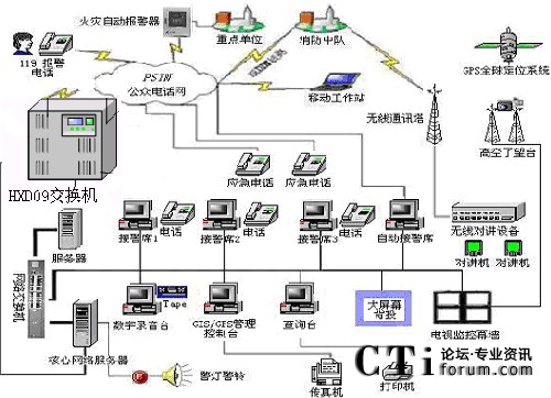 隨著國民經(jīng)濟的不斷發(fā)展,我國城市的現(xiàn)代化進程在不斷加快,因而對消防部隊的反應(yīng)速度、調(diào)度指揮、現(xiàn)場搶險救災(zāi)等綜合能力要求越來越高.現(xiàn)代化的消防通信指揮系統(tǒng)是受理火災(zāi)報警、實施通訊調(diào)度指揮、執(zhí)行滅火救災(zāi)工作的必不可少的技術(shù)裝備,它對于保護國家和人民生命財產(chǎn)的安全、保障經(jīng)濟建設(shè)的順利發(fā)展、維護社會的穩(wěn)定有著十分重要的意義.,恒訊達(dá)公司的(HXD09)交換機切合實際,綜合應(yīng)用現(xiàn)代通信技術(shù)、計算機網(wǎng)絡(luò)技術(shù)、結(jié)合地理信息技術(shù)、VOIP、虛擬現(xiàn)實技術(shù),開發(fā)了網(wǎng)絡(luò)化、智能化、可視化的、高度模塊化、以技術(shù)先進、組網(wǎng)靈活、整體性強、實時性高、安全可靠、實用高效為特點的可編程智能語音交換機,HXD09交換機接口易開放性,結(jié)合圖形化的流程生成器和二次開發(fā)接口,為119系統(tǒng)平臺開發(fā)商提供強大的平臺保證。