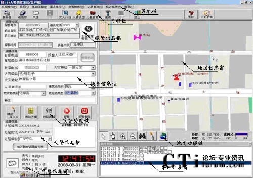 - 電話調(diào)度功能: 接警后,可撥打有關(guān)科室、消防中隊的電話進行調(diào)度指揮。并將每次電話形成記錄存放在電腦中。 三方通話功能:接警時可同時接通某科室、消防中隊等聯(lián)動單位,實現(xiàn)報警方、接警方、出警方三方通話功能。