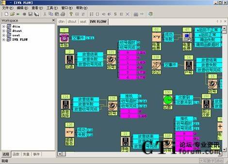 根據(jù)對客戶應用系統(tǒng)的需求分析,列出您需要的提示音、信號音、函數(shù)以及變量,并且用流程生成器生成相應的提示音表、信號音表、函數(shù)表和和變量表。這些表在應用系統(tǒng)運行過程中為CTISERVER 程序提供正確的信息。