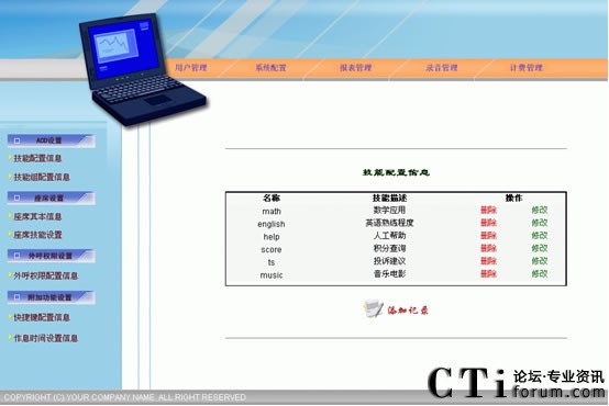 CTI控制是整個呼叫中心呼叫控制的樞紐。所有類型的呼叫控制都由CTI控制服務(wù)器進行控制,CTI服務(wù)器將各種類型的呼叫進行統(tǒng)一的控制,以便進行統(tǒng)一ACD排隊、管理、統(tǒng)計和監(jiān)控。