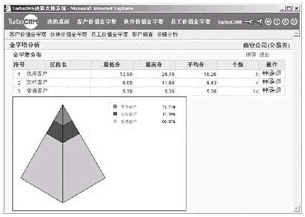 TurboCRM系統(tǒng)中的客戶價(jià)值金字塔,支持對(duì)分析結(jié)果中呈現(xiàn)的某個(gè)價(jià)值區(qū)間的客戶群進(jìn)行共性特征的抽象和提煉,幫助企業(yè)決策人發(fā)現(xiàn)重要客戶之間的共性,從而有助于尋找和挖掘最有價(jià)值的客戶(如表4、表5所示)。這一功能可以將零散的數(shù)據(jù)轉(zhuǎn)化為知識(shí),迅速地為企業(yè)決策人提供有效幫助。